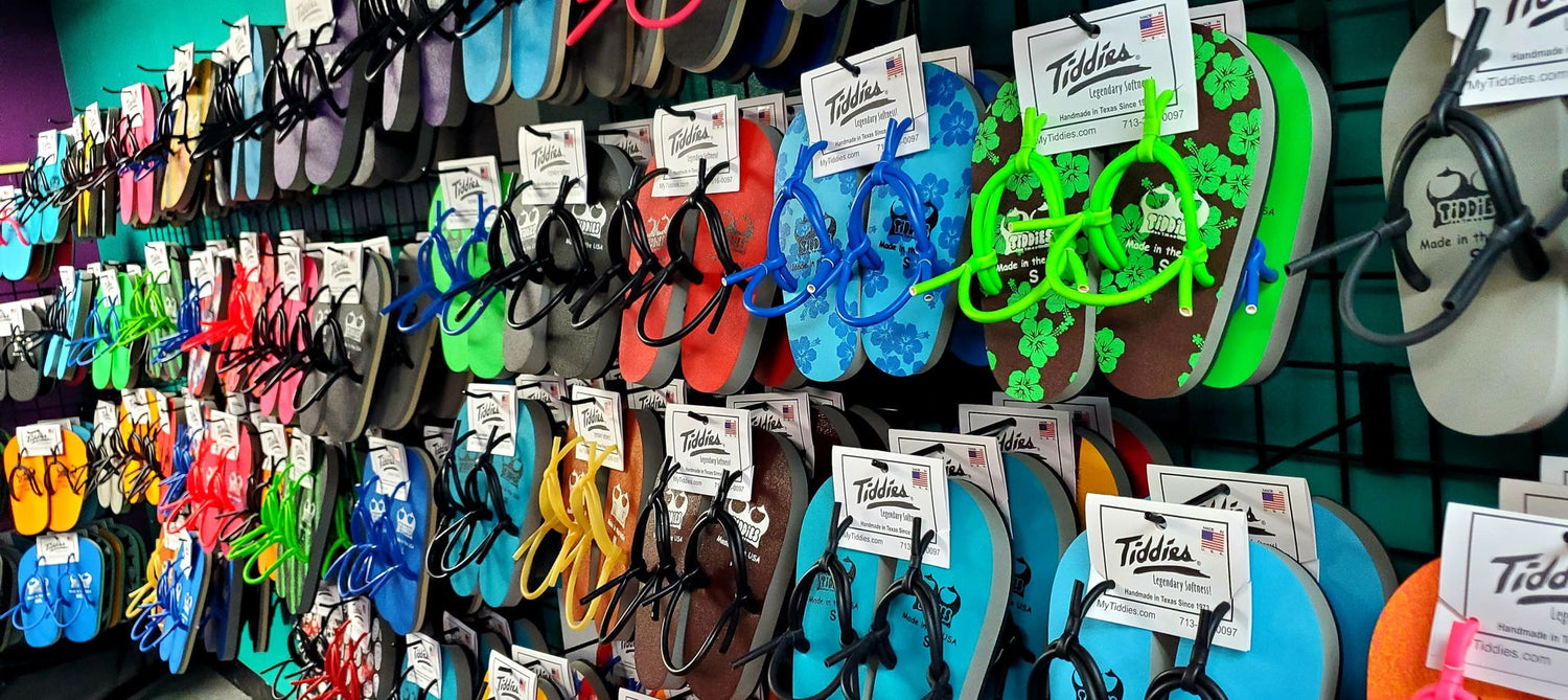 Home of the softest sandal made in the USA. Our Tiddies come in all shapes and sizes from the Big Knockers to petite Ta-Tas. We have something for you. Our closed cell foam and adjustable latex tubing allow for maximum comfort, you just found the shoe of your dreams.