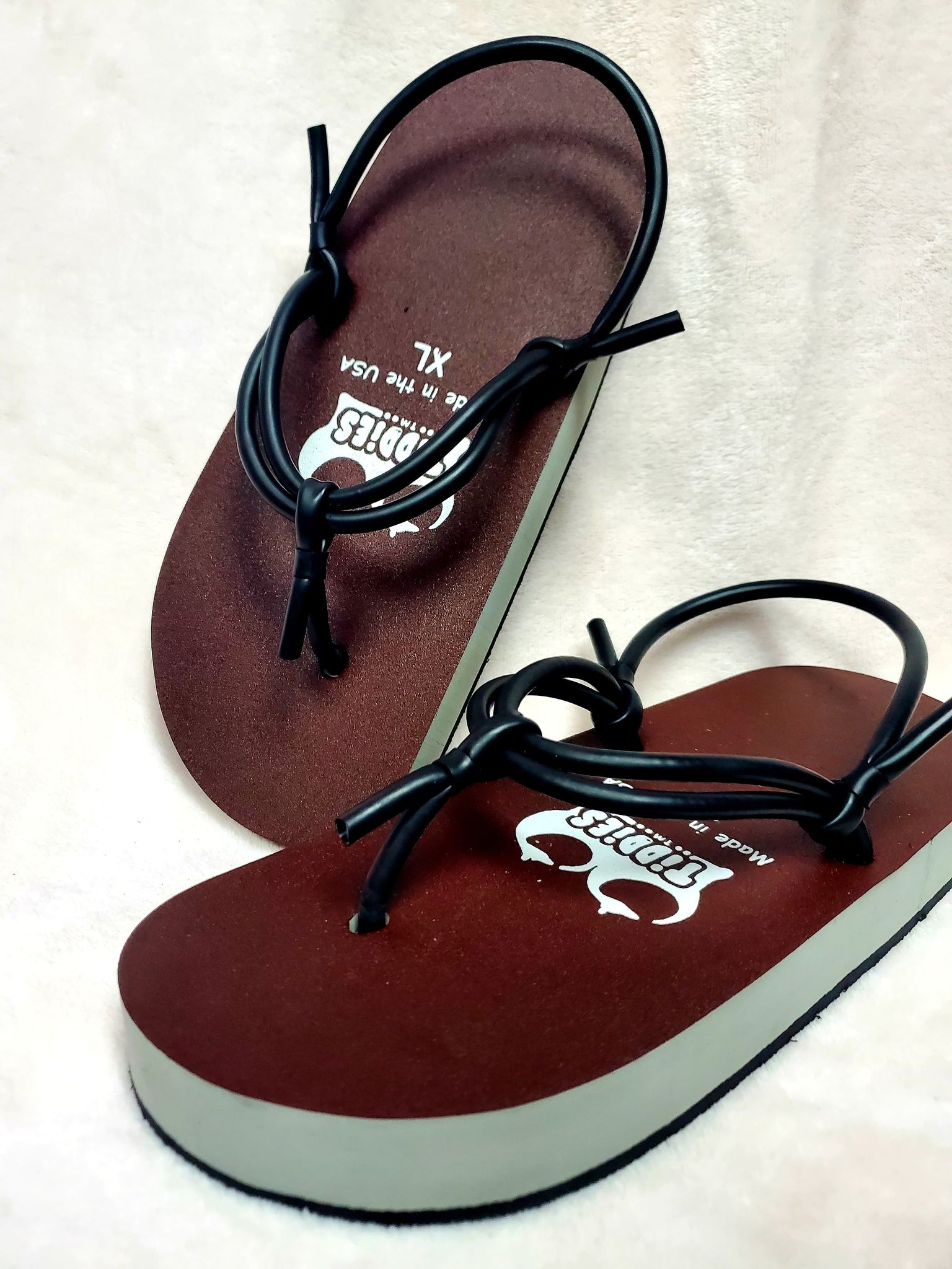 Our Tiddies are handcrafted in Texas with USA manufactured material. Our closed cell foam is the stuff of legendary softness, and our adjustable surgical tubing straps allow you find the perfect fit for you. This is a completely customizable shoe.
